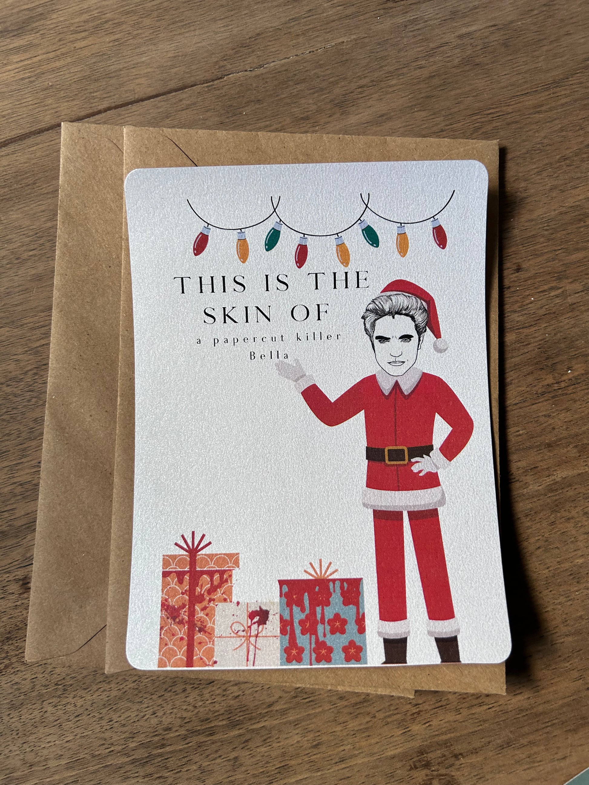 Les cartes sont vendues uniquement par lot de 3, accompagnées de leurs enveloppes kraft naturelles, prêtes à offrir, à envoyer ou à afficher fièrement sur la cheminée (même sans vampire scintillant à proximité).